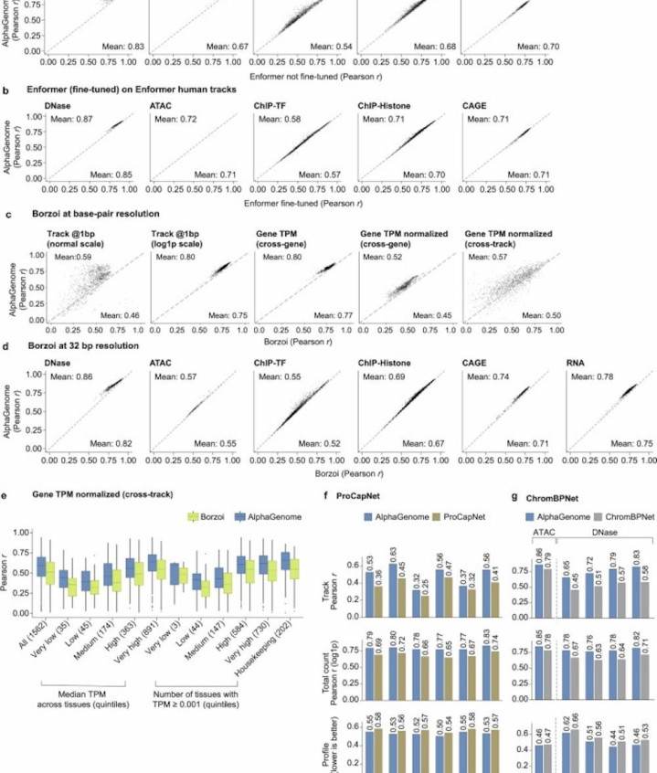 还有件事不得不提,就是它的“统一预测”能力。以往,同类型的老旧模型,动不动来一堆独立算法才搞定的事情,现在AlphaGenome一个模型单场就搞掂。剪接位点在哪、RNA表达怎么变、染色质能不能打开,说拆骨头拆骨头,简直无缝切换。