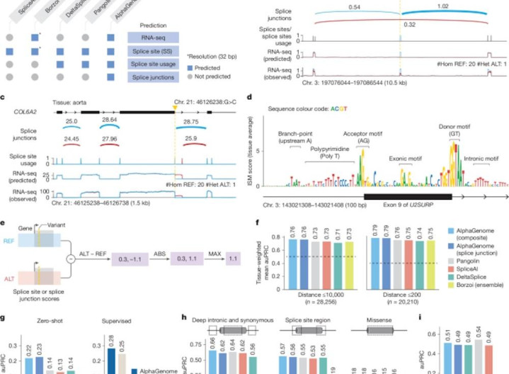 当然亮点还不止这些。AlphaGenome还有个厉害之处是对RNA剪接异常的观察,以前很多AI只能摸到皮毛,例如剪接位置,却吃力不讨好地错误判断使用率。现在这个“改进版”可以直接描绘剪接全貌,把那些曾引起罕见病的重要基因突变也推到阳光下溜溜晒。